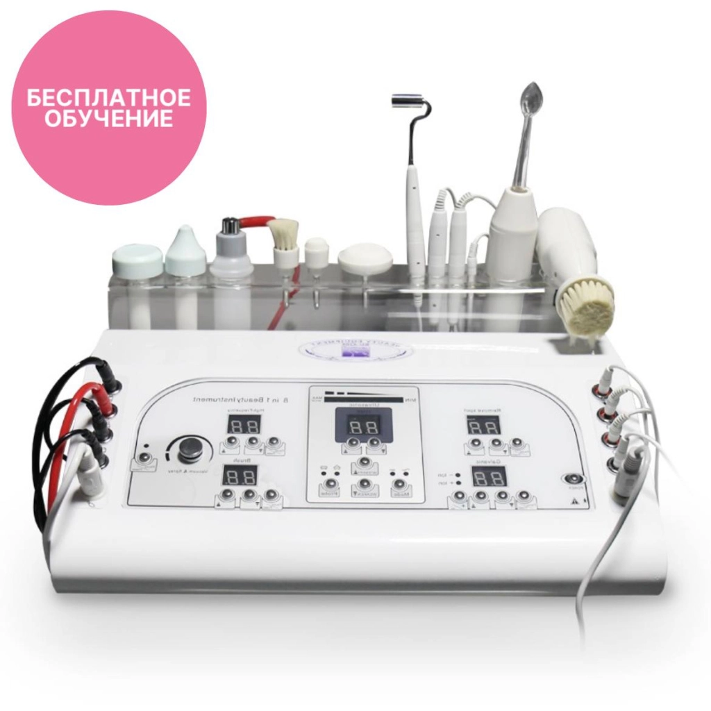 Косметологический комбайн RU-8208, который сочетает в себе следующие функции: брашшинг, гальваника, вакуумный спрей, ультразвуковая терапия, коагулятор, дарсонваль.