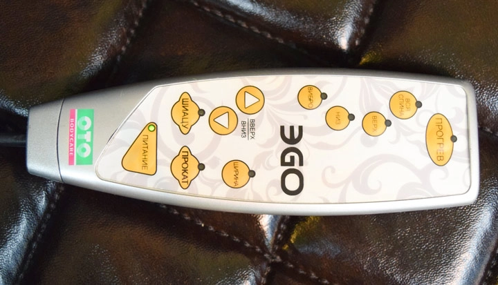 Массажное кресло EGO LORD имеет простое управление c помощью пульта, который хранится в удобном кармане справа под ручкой подлокотника. С помощью руссифицированного пульта, пользователь легко может управлять функциями массажа.